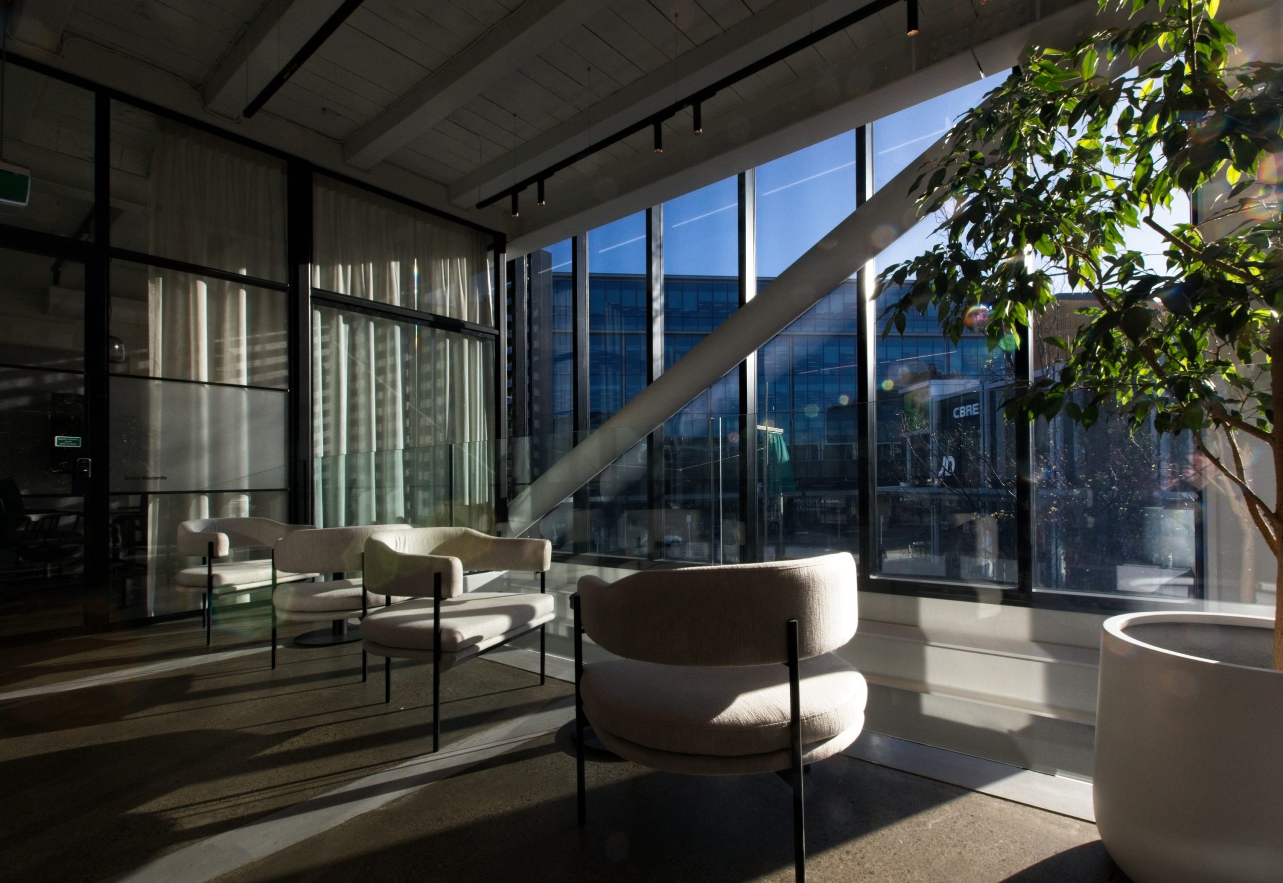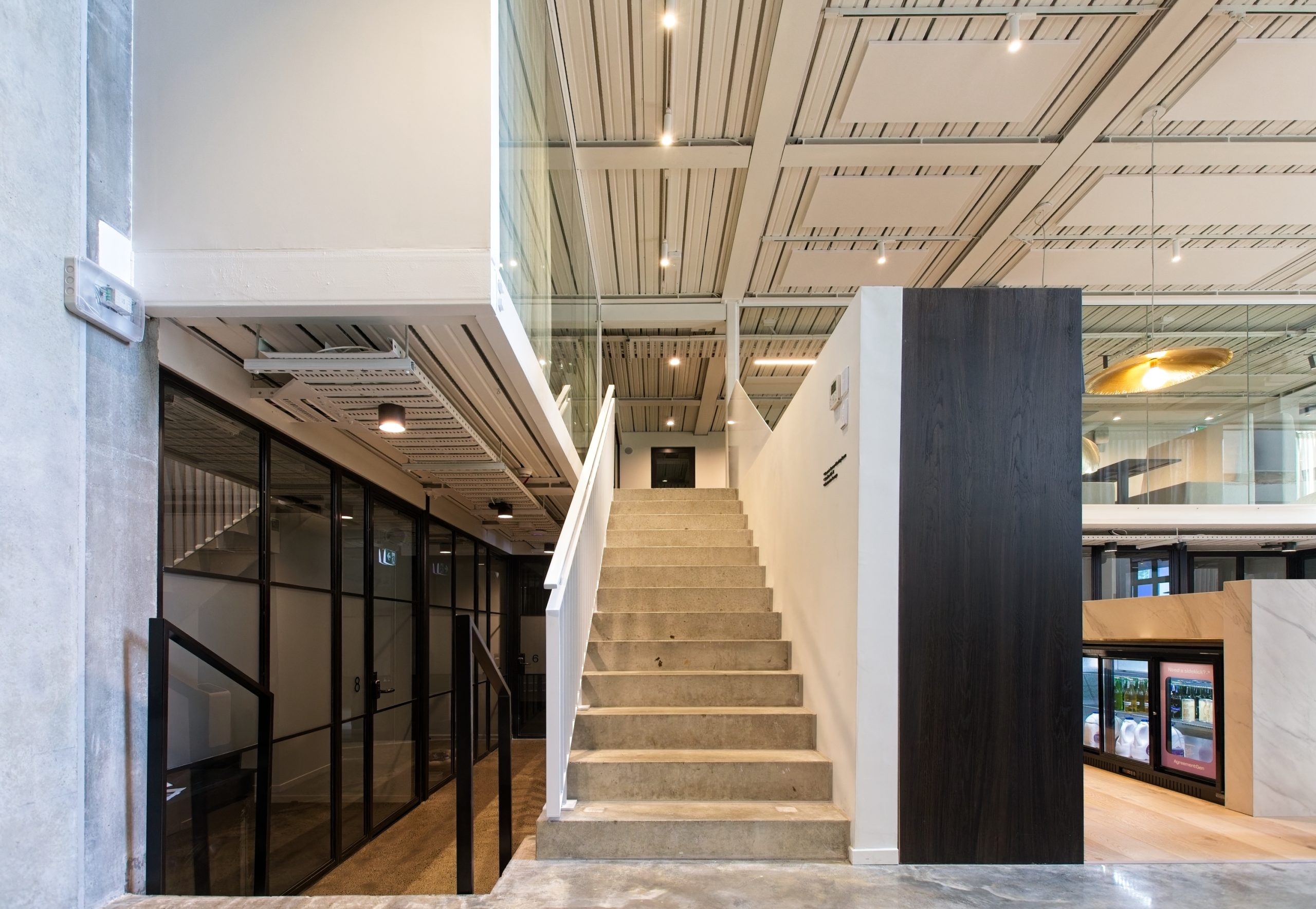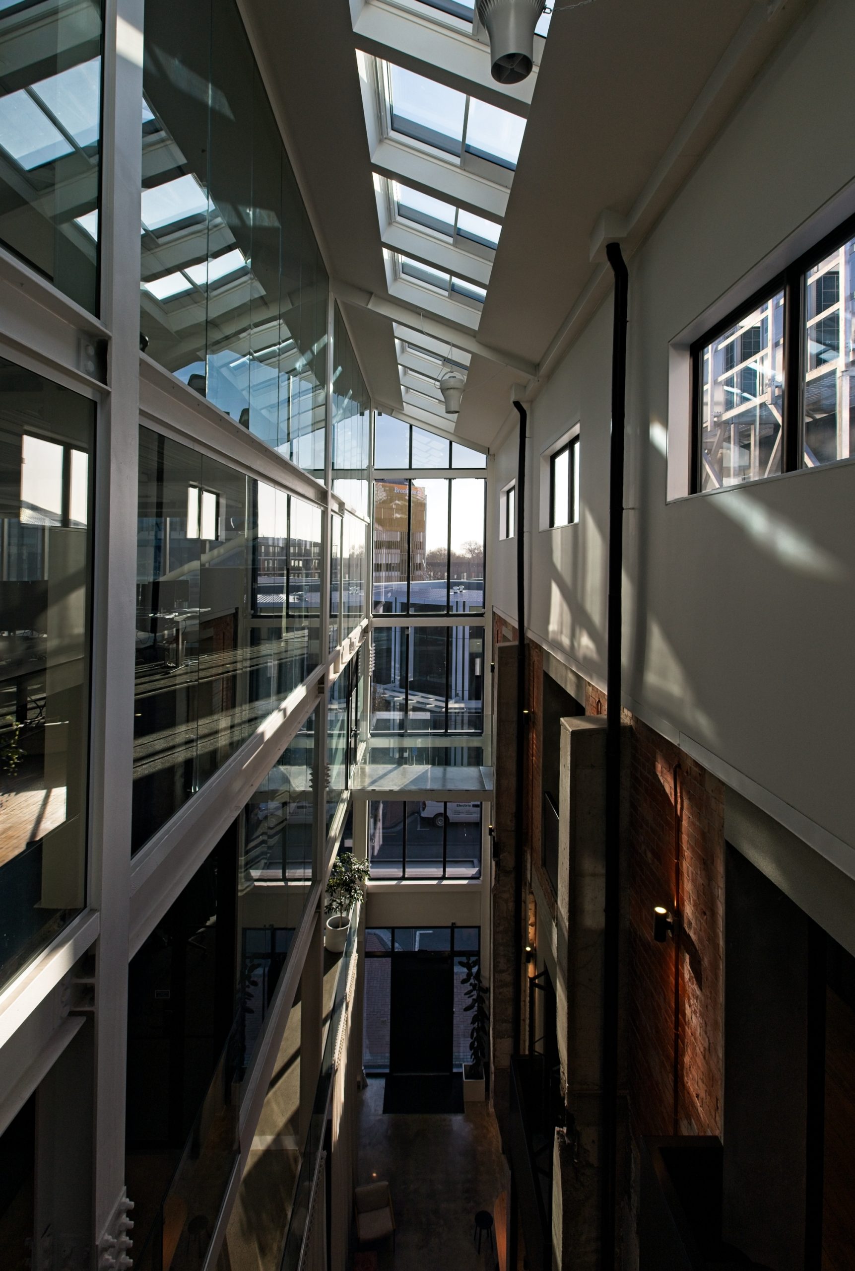 A feature is the full-height atrium, along with maintaining the exposed walls from the historic neighbouring QB building.